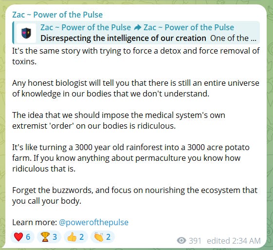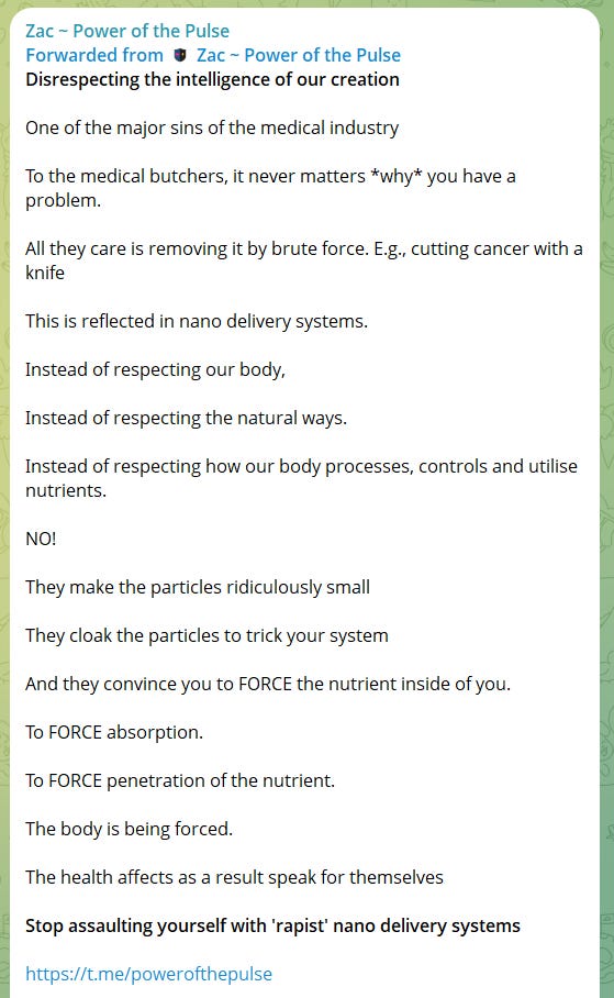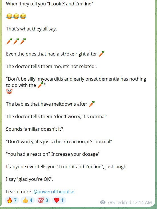 This post blew up on Telegram. I think this shows that people are actually starving for real information about the supplement psyops.