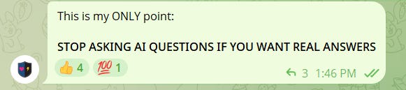 https://t.me/powerofthepulseI had a discussion with some people regarding AI on another channel after sharing the above post. One person in particular just didn’t understand what I was talking about, this was my conclusion to the discussion: