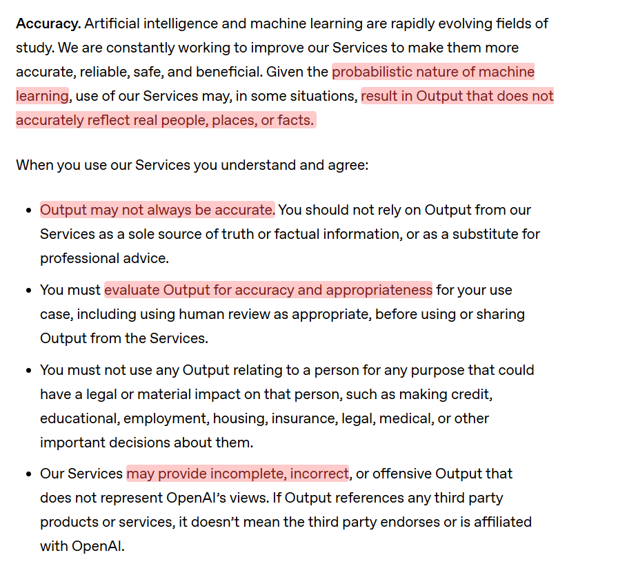 And I should clarify, when referring to AI I’m again referring to language models like ChatGPT. Read ChatGPT’s terms for yourself.