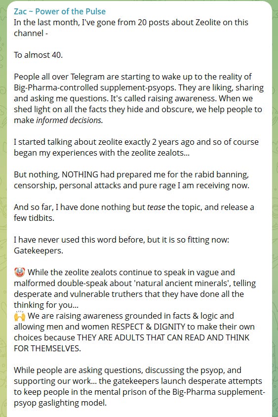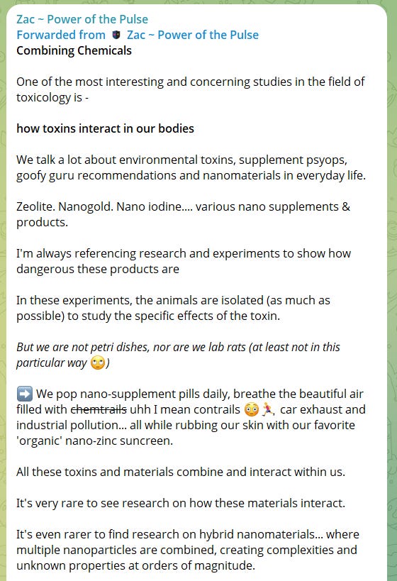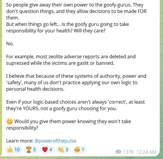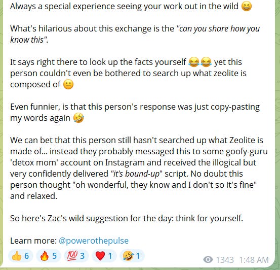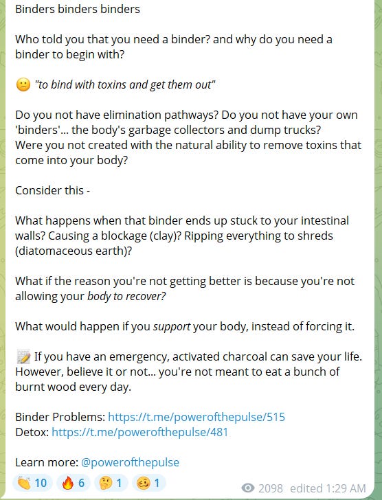 Interestingly, it also resonated with the admin of a group where a lot of people promote binders. They replied with a message recognising that the body has a natural detox system (that’s where the concept of detoxification comes from to begin with) and how certain minerals and health-support aid these natural processes.