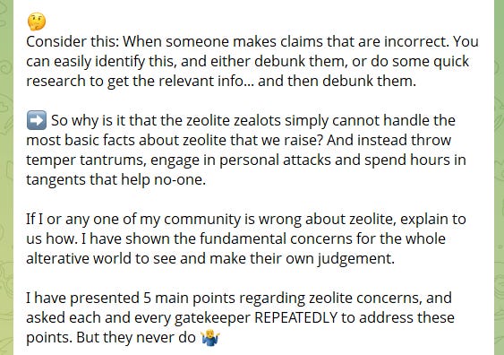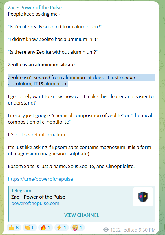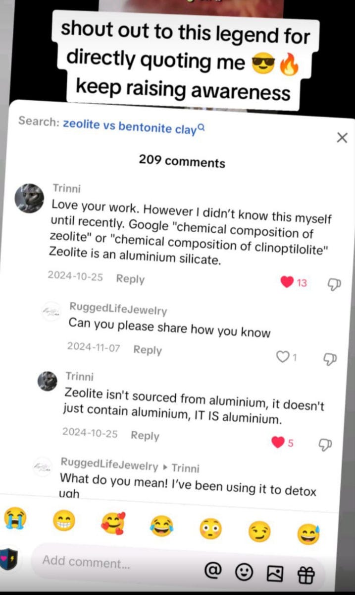 On the topic of Rocks & Crystals, a Zeolite Zealot was trying to attack me (what’s new right?). So they parroted the usual hogwash about aluminum being safe and inert… then they told me Zeolite is like rubies, emeralds, topaz, sapphires etc. and said “why do you hate rocks?”