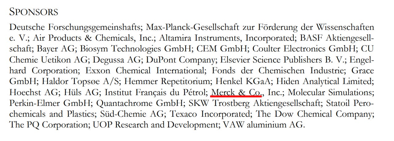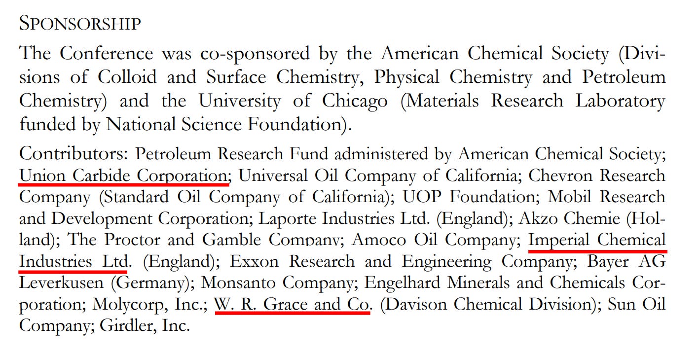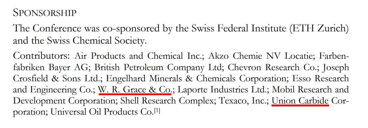 Clearly, the above three companies were active in the pharmaceutical industry at the time of sponsoring this Zeolite conference.